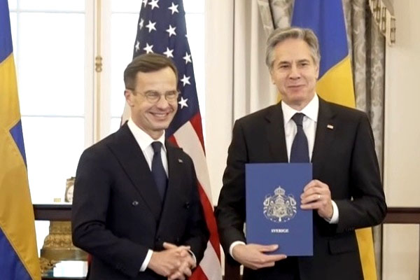 سویڈن کے وزیر اعظم کرسٹرسن نے سویڈن کی نیٹو میں شمولیت کی دستاویزات امریکی وزیر خارجہ بلنکن کے حوالے کیں، جو نیٹو دستاویزات کے محافظ ہیں۔ یہ سویڈن کی نیٹو میں باضابطہ شمولیت اور نیٹو کا 32 واں رکن بننے کی علامت ہے۔