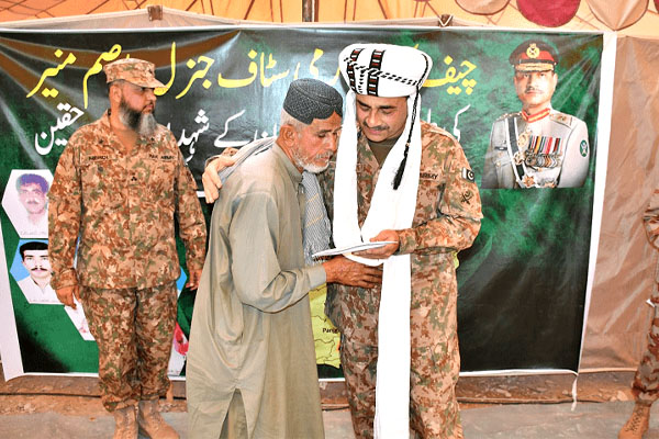 آئی ایس پی آر کے مطابق اس موقع پر آرمی چیف نے شہدا کے اہل خانہ، مقامی عمائدین اور کسانوں سے بات چیت کی۔