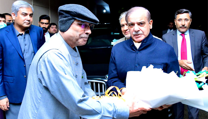 دوسری جانب نو منتخب صدر مملکت آصف علی زردای کو مبارکباد دینے کیلئے وزیراعظم پاکستان شہباز شریف کی وفد کے ہمراہ زرداری ہاؤس آمد،اسلام آباد: وزیراعظم شہباز شریف نے صدر پاکستان کو بھاری اکثریت سے کامیابی پرمبارکباد دی۔