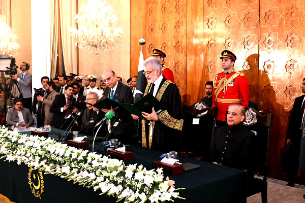تفصیلات کے مطابق تقریب حلف برداری میں سابق صدر عارف علوی، قائدن لیگ نوازشریف، اسپیکر قومی اسمبلی ایاز صادق ، بلاول بھٹو،بختاور بھٹو،آصفہ بھٹو زرداری ،چیئرمین جوائنٹ چیفس آف اسٹاف کمیٹی جنرل ساحر شمشاد مرزا بھی تقریب میں شریک ہوئے۔