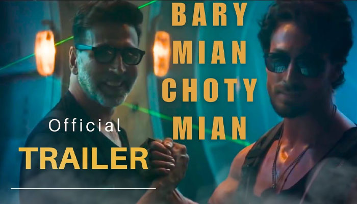 بالی وڈ اسٹار اکشے کمار اور ٹائیگر شیروف کی نئی فلم ’بڑے میاں چھوٹے میاں‘ کا ٹریلر 26 مارچ کو جاری ہوگا۔ایکشن اور کامیڈی سے بھرپور فلم کی شوٹنگ دنیا کے مختلف شہروں اور ممالک ممبئی، ابوظہبی، لندن، اسکاٹ لینڈ اور اردن میں کی گئی۔فلم کا ٹیزر ایکشن مناظر سے بھرپور ہے اور اس میں حب الوطنی کا تڑکا بھی لگا ہے جبکہ اس میں اکشے اور ٹائیگر اپنے مخصوص ایکشن میں دکھائی دیتے ہیں۔نئی فلم کا 1998 کی بلاک بسٹر فلم ’بڑے میاں چھوٹے میاں‘ کی کہانی سے کوئی تعلق نہیں ہے جس میں امیتابھ بچن اور گووندا نے مرکزی کردار نبھائے تھے۔پرتھوی راج سکومران فلم میں ولن کا کردار ادا کررہے ہیں جبکہ سوناکشی سنہا، منوشی چلر اور الایہ ایف بھی فلم کا حصہ ہیں۔فلم ڈائریکٹر علی عباس ظفر کی نئی پیشکش کا مداحوں کو شدت سے انتظار ہے اور یہ رواں برس اپریل میں عید کے موقع پر ریلیز کی جائے گی۔