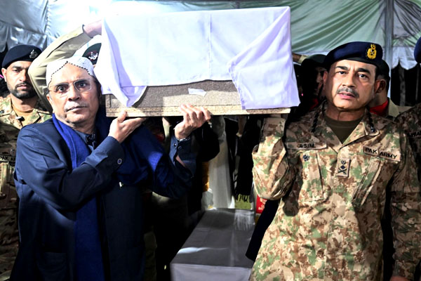 صدر آصف زرداری نے مزید کہا کہ پوری قوم ہماری مسلح افواج کے ساتھ یکجہتی کے ساتھ کھڑی ہے اور یہ عظیم قربانی ہمارے بہادر جوانوں کے غیر متزلزل عزم کی زندہ مثال ہے۔