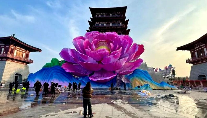 گنیز ورلڈ ریکارڈز نے اس لالٹین سے متعلق اعلان کیا جو 2024 کے بہار میلے کے لیے شہر لوئیانگ کے پیونی پویلین میں تعمیر کی گئی ہے۔