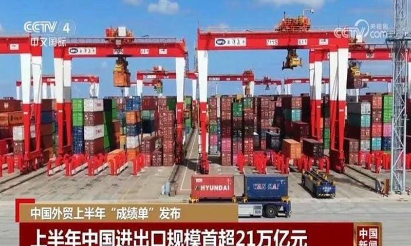 سال کی پہلی ششماہی میں اشیاء کی درآمدات و برآمدات 6.1 فیصد اضافے کے ساتھ 21.2 ٹریلین یوآن تک پہنچ گئیں۔ خدمات کی درآمدات اور برآمدات میں 14 فیصد اضافہ ہوا۔ اشیاء اور خدمات کی درآمدات اور برآمدات نے معاشی ترقی میں 13.9 فیصد حصہ ڈالا۔ وزارت تجارت کی جانب سے 16,000 اہم غیر ملکی تجارت اور غیر ملکی مالی اعانت سے چلنے والے کاروباری اداروں کے ایک سروے کے مطابق، ستر فیصد سے زیادہ کاروباری اداروں کی سالانہ برآمدات میں اضافہ متوقع ہے۔