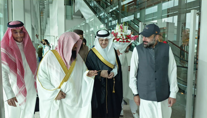 وفاقی وزیر چوہدری سالک حسین، سعودی سفیر نواف سعید المالکی، سیکرٹری مذہبی امور ذوالفقار حیدر نے معزز مہمان کا استقبال کیا ۔