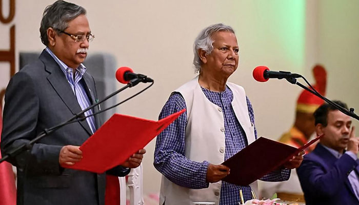 غیر ملکی میڈیا کے مطابق حلف برداری کی تقریب ایوان صدر میں ہوئی جہاں بنگلہ دیش کے صدر محمد شہاب الدین نے ڈاکٹر محمد یونس سے حلف لیا۔