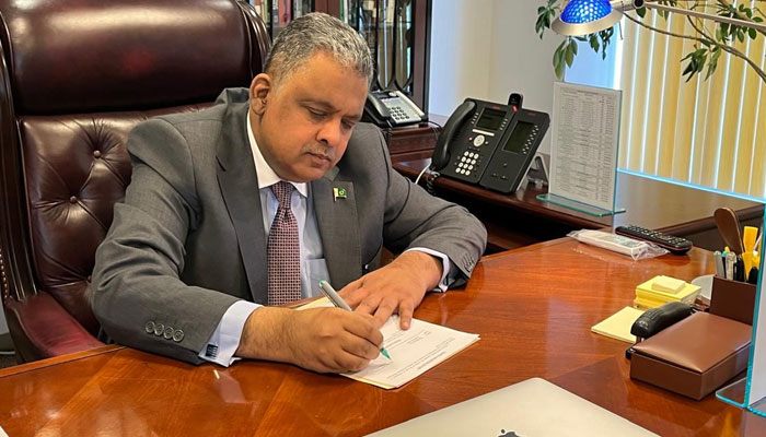 امریکہ میں متعین ہونے والے نئے پاکستانی سفیر رضوان سعید شیخ نے امریکہ کے دارالحکومت واشنگٹن ڈی سی پہنچ کر اپنی سفارتی ذمہ داریاں باقاعدہ طور پر سنبھال لی ہیں۔ سفیر پاکستان نے سفارت خانے میں مصروف دن گزارہ۔ انہوں نے سفارت خانے کے تمام شعبہ جات کے سربراہان اور افسران سے تفصیلی ملاقات کی۔ بعد ازاں مختلف شعبوں کے سربراہان نے سفیر پاکستان کو اپنے دائرہ کار کے حوالے سے تفصیلی بریفنگ دی۔ علاوہ ازیں سفیر پاکستان نے امریکہ میں واقع پاکستان کے چاروں قونصلیٹ کے سربراہان سے بھی زوم کے ذریعے ملاقات کی اور مختلف امور پر بریفنگ حاصل کی۔