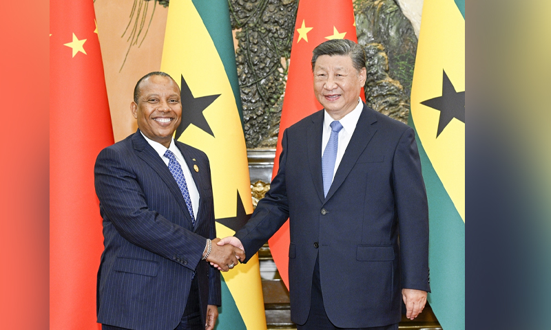 بیجنگ:چینی صدر شی جن پھنگ نے بیجنگ کے عظیم عوامی ہال میں چین افریقہ تعاون فورم کے بیجنگ سربراہ اجلاس میں شریک ساؤ ٹوم اور پرنسپ کے وزیر اعظم پیٹرس ٹروواڈا سے ملاقات کی۔
