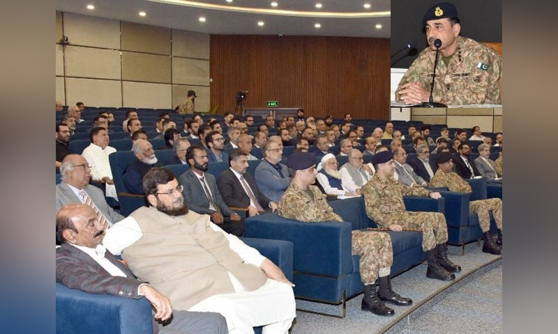 آرمی چیف نے کہا کہ میں ایک سال پہلے آپ سب لوگوں سے مخاطب تھا اور کہا تھا کہ مایوس مت ہوں، مایوسی گناہ ہے، پاکستان کی خوشحالی کے بارے میں کبھی امید نہیں چھوڑنا، معاشرے میں مایوسی پیدا کرنے کی ناکام کوششوں کو اجتماعی کاوشوں سے شکست دی گئی، پاکستان مختلف شعبوں میں غیر معمولی صلاحیت رکھتا ہے بے پناہ وسائل اور صلاحیت کے پیش نظر پاکستان اقوام عالم میں اپنا جائز مقام حاصل کرنا چاہتا ہے۔