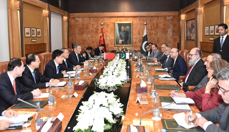 صدر مملکت نے تجارتی اور عوامی روابط مضبوط بنانے کیلئے ہمہ موسمی سڑکوں کے ذریعے روابط بڑھانے کی ضرورت پر زور دیا۔ صدر آصف زرداری نے کہا کہ چینی کمپنیوں کو پاکستان اسٹاک ایکسچینج میں سرمایہ کاری کے ذریعے پاکستان میں موجود مواقع سے فائدہ اٹھانا چاہیے، سی پیک اور گوادر پورٹ کی مدد سے چین کی اقتصادی ترقی سے بھرپور استفادہ کرنے کا وقت آ گیا ہے، نومبر میں چین کا دورہ کروں گا۔