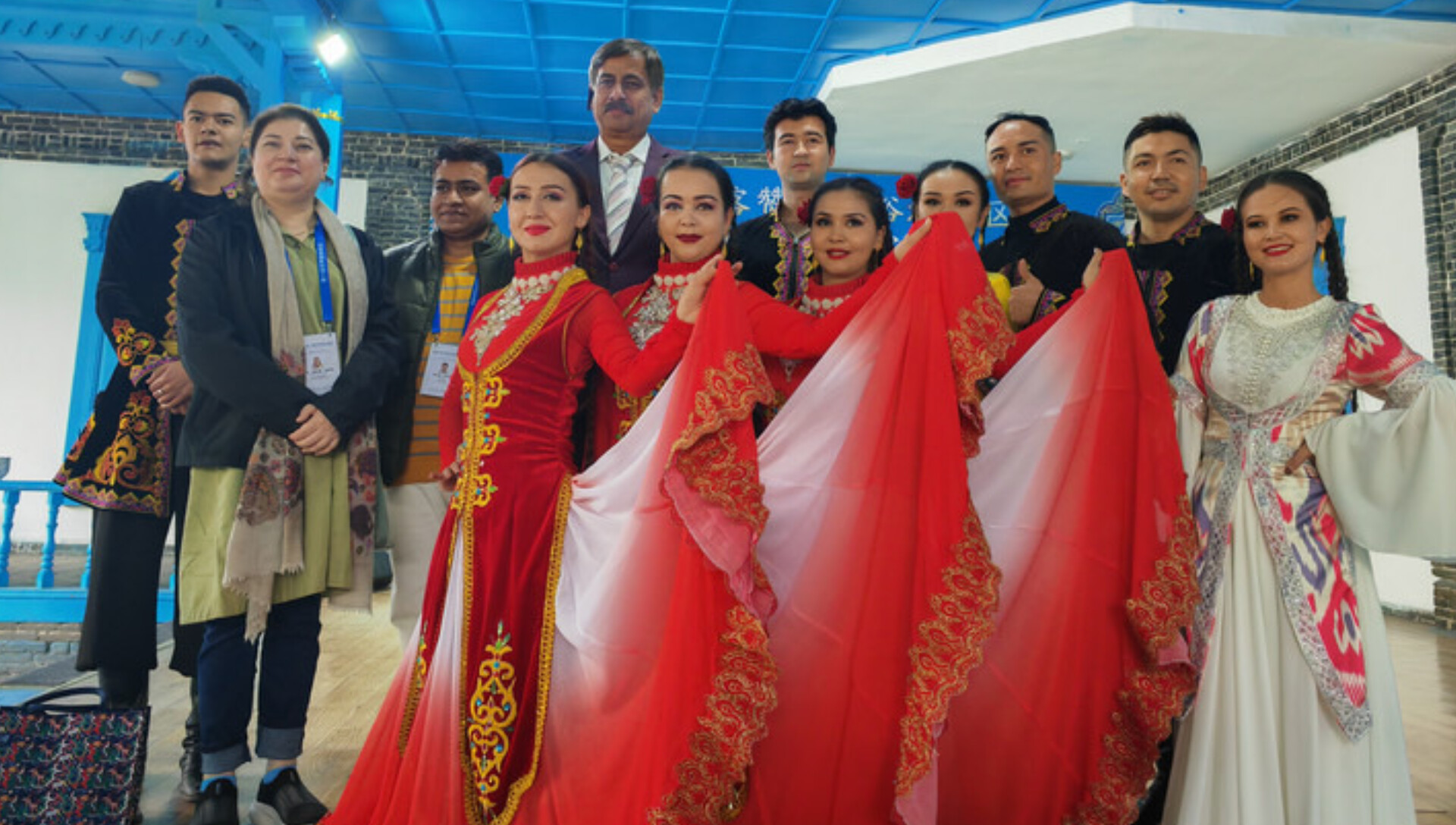 سیاحتی علاقے میں چہل قدمی کرتے ہوئے بین الاقوامی سیاحوں نے استقبالیہ تقریب میں شرکت کی جہاں مختلف نسلی گروہوں کے افراد روایتی ملبوسات زیب تن کئے ایک ساتھ رقص کر رہے تھے۔