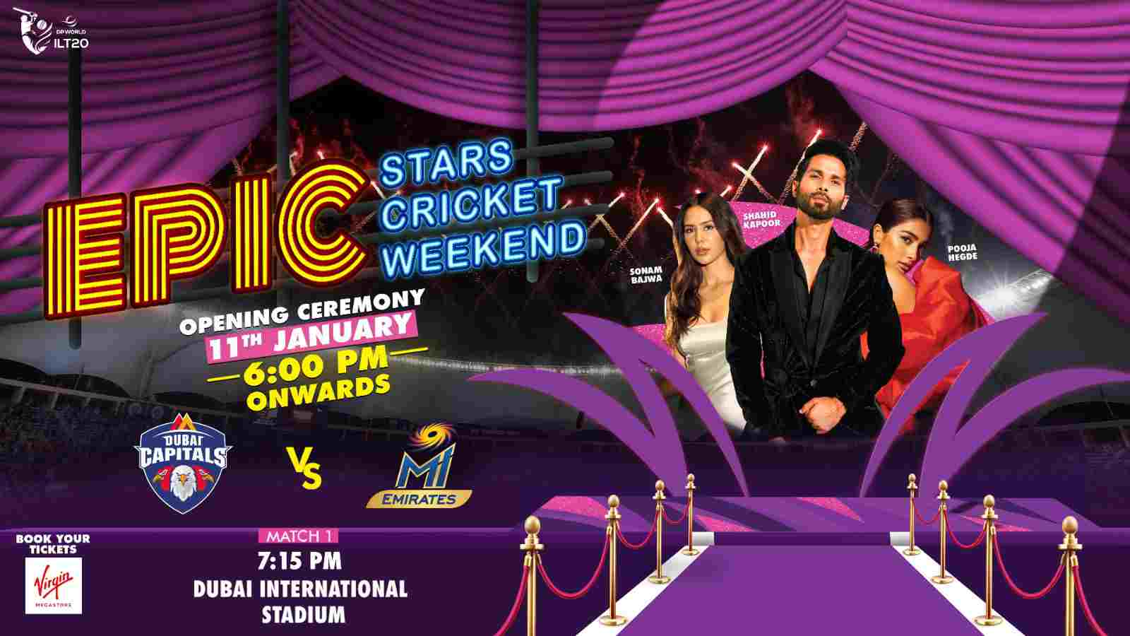 دبئی : آئی ایل ٹی 20 سیزن 3 کا آغاز ایک شاندار افتتاحی تقریب سے ہوگا جس میں بالی ووڈ سپر اسٹار شاہد کپور، پوجا ہیگڑے اور سونم باجوہ فن کا مظاہرہ کریں گے افتتاحی تقریب ہفتہ 11 جنوری 2025 کو دبئی انٹرنیشنل اسٹیڈیم میں ہوگی۔