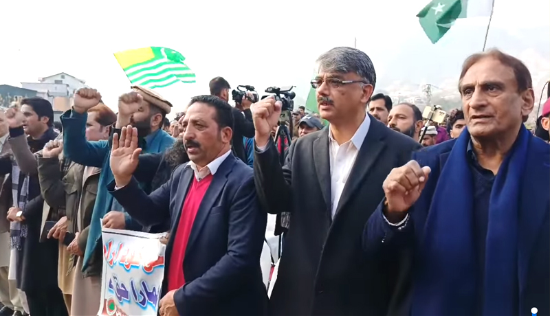 اس حوالے سے وزیراعظم آزاد کشمیر انوارالحق کا کہنا تھا کہ اقوام متحدہ کا کشمیریوں سے استصواب رائے کا وعدہ پورا نہیں ہو سکا، کشمیریوں کی جدوجہد تکمیل پاکستان کیلئے ہے، شہدا کی قربانیوں کو رائیگاں نہیں جانے دیں گے۔