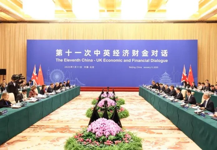 چینی نائب وزیر اعظم ہی لی فنگ اور برطانوی وزیرخزانہ ریچل ریوز نے بات چت کی مشترکہ صدارت کی۔