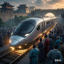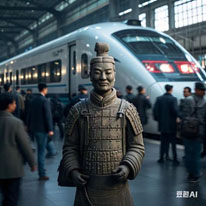 نیچے دی گئی مصنوعی ذہانت سے تیار کردہ تین تصاویر میں ہائی اسپیڈ ٹرین پر سوار ٹیراکوٹا جنگجو، خیالی طور پر قدیم چین واپس جانے والی ہائی اسپیڈ ٹرین کے مناظر ، اور مستقبل قریب میں ایک منظر پیش کیا گیا ہے  جب پاکستانی دوست بھی ہائی اسپیڈ ٹرین پر سفر کر سکیں گے۔ اگر ایسا ہوتا ہے تو اسلام آباد سے کراچی کا سفر  جو آج کل گرین لائن کے ذریعے تقریباً سترہ گھنٹے میں طے ہوتا ہے وہ سمٹ کر ہائی اسپیڈ ٹرین کی مدد سے محض چار گھنٹے رہ جائے گا۔ میری خواہش ہے کہ ایسا وقت جلد آئے۔