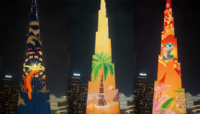 چائنامیڈیا گروپ کی جانب سے مسلسل چھٹے سال دنیا کی بلند ترین عمارت پر چینی نئے سال کے لائٹ شو کے اہتمام سے برج خلیفہ کو روشن کیا گیا ہے ، جس سے دنیا بھر میں بسنے والے چینی عوام کی جانب سے چینی عوام اور دنیا بھر کے لوگوں کو نیک خواہشات کا پیغام دیا گیا ہے۔