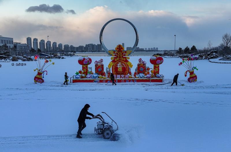 صبح سویرے شان ڈونگ کے دارالحکومت جِنان میں ایک بجلی گھر کے ڈائریکٹر وو بن بن اور ان کی ٹیم نے برف سے پیدا ہونے والے مسائل سے نمٹنے کے لئے 10 کے وی پاور لائن کادورہ کیا۔