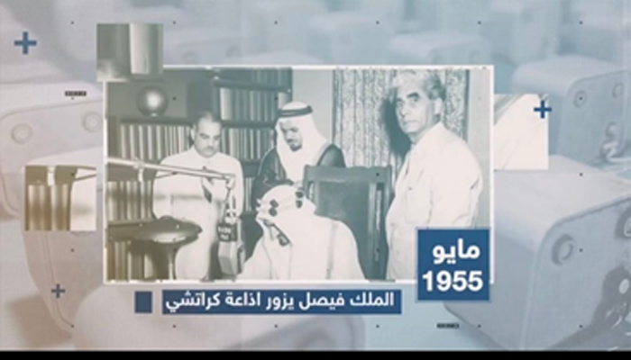 شیئر کی گئی ویڈیو میں 1955 میں سعودی فرماں روا شاہ فیصل بن عبدالعزیزؒ کے کراچی ریڈیو اسٹیشن کے دورے کی تاریخی تصاویر اور معلومات شامل ہیں۔
