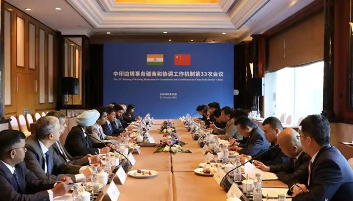 بیجنگ:چینی وزارت خارجہ کے شعبہ سرحدی اور سمندری امور کے ڈائریکٹر جنرل ہونگ لیانگ اور بھارت کی وزارت خارجہ کے مشرقی ایشیا کے شعبہ کے جوائنٹ سیکریٹری گوتم بمباوالےنے بیجنگ میں چین-بھارت سرحدی امور سے متعلق مشاورت اور کوآرڈینیشن میکانزم کے 33ویں اجلاس کی مشترکہ صدارت کی۔ دونوں ممالک کے خارجہ، دفاع، داخلہ اور امیگریشن کے محکموں کے نمائندوں نے اس اجلاس میں شرکت کی۔ دونوں فریقوں نے مثبت، تعمیری اور پیشگی رویہ اپناتے ہوئے، دسمبر 2024 میں چین۔بھارت سرحدی مسائل کے خصوصی نمائندوں کی 23ویں میٹنگ میں حاصل ہونے والے اتفاق رائے پر عملدرآمد پر تبادلہ خیال کیا، جس میں سرحدی حد بندی کی بات چیت، سرحدی کنٹرول، میکانزم کی تعمیر، اور سرحد پار تعاون و تبادلے جیسے معاملات شامل تھے۔ فریقین نے چین۔بھارت سرحدی علاقے میں امن و سکون کو برقرار رکھنے کے لیے مؤثر اقدامات اٹھانے پر اتفاق کیا، نیز چین۔بھارت سرحدی مسائل کے خصوصی نمائندوں کی 24ویں میٹنگ کی تیاریوں کو فعال طور پر آگے بڑھانے پر بھی رضامندی ظاہر کی۔