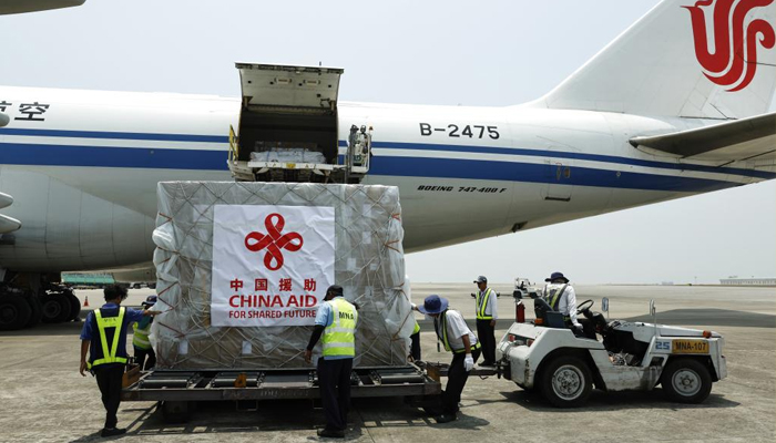 ینگون : چینی حکومت کی جانب سے میانمار کو فراہم کی جانے والی ہنگامی امدادی سامان کی پہلی کھیپ ینگون بین الاقوامی ہوائی اڈے پر پہنچی۔ میانمار میں چین کے سفیر ما جیا اور میانمار کے صوبہ ینگون کے وزیر اعلیٰ سو ڈن ہوائی اڈے پر استقبال کے لئے موجود تھے۔