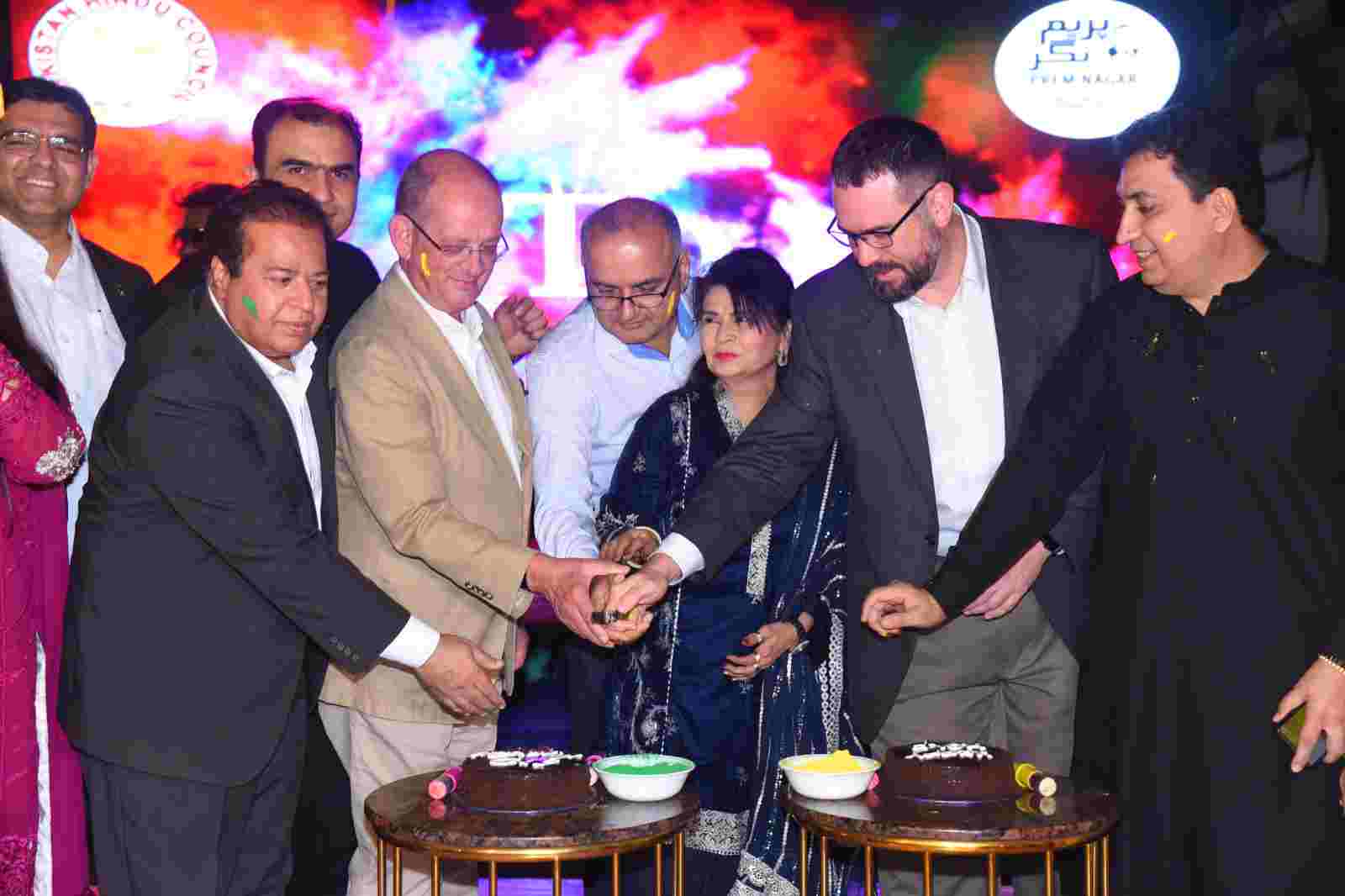 وانکوانی ہاؤس میں منعقدہ رنگارنگ تقریب میں ہولی تہوار اور عیدملن پارٹی کیلئے دو الگ کیک کاٹے گیے، اس موقع پر مذہبی بھجن، قومی ترانے، ثقافتی پرفارمنس اور روایتی کھانوں نے شرکاء کے دل جیت لیے، مذہبی ہم آہنگی کی تقریب میں مختلف ممالک کے سفارت کاروں، مذہبی رہنماؤں، سول سوسائٹی، تاجر برادری اور میڈیا کے نمائندوں نے شرکت کی۔