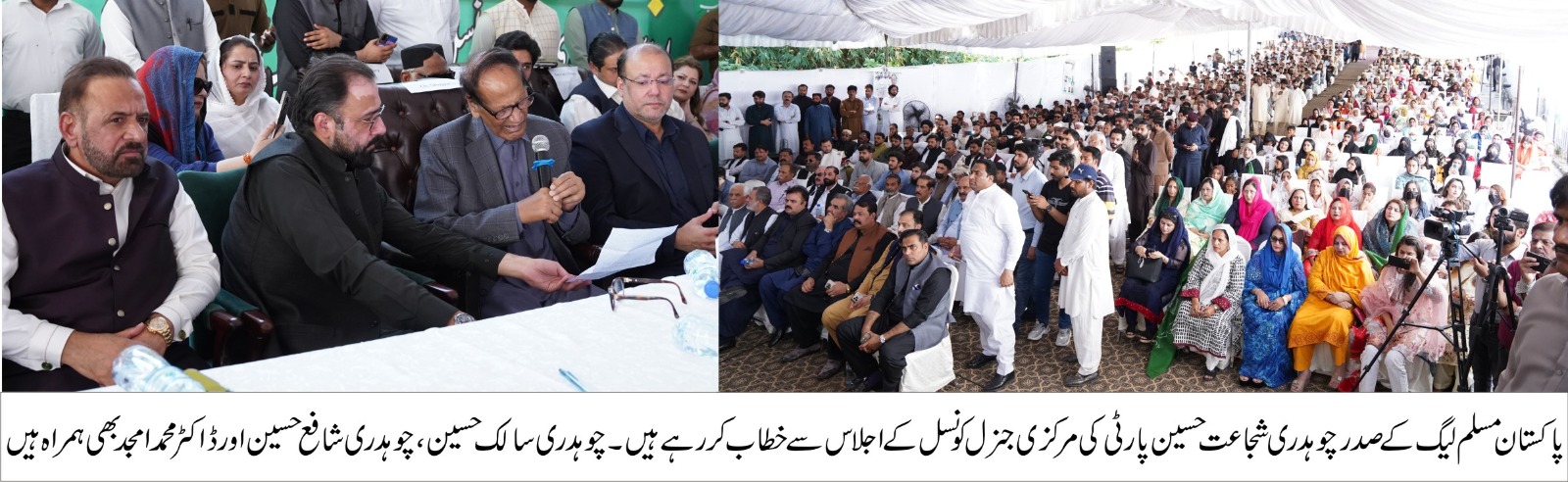 جنرل کونسل کے اجلاس میں ایک قرارداد کے ذریعے آئندہ تین سالوں کے لئے ڈاکٹر محمد امجد کو مرکزی چیف آرگنائزر اور غلام مصطفیٰ ملک کو مرکزی سیکرٹری اطلاعات مقرر کیا گیا۔اجلاس میں مسئلہ کشمیر اور فلسطین میں کے مسلمانوں پر مظالم کے حوالے سے مزمتی قراردادیں پیش اور منظور کی گئیں۔اس موقع پر چوہدری شجاعت حسین نے خطاب کرتے ہوئے کہا کہ قرآن الحکیم ہمارا منشور ہے۔پاکستان مسلم لیگ کی مرکزی جنرل کونسل کے اجلاس اور انٹرا پارٹی انتخابات کے انعقاد پر انتظامیہ کا شکریہ ادا کرتا ہوں۔ایک مرتبہ پھ