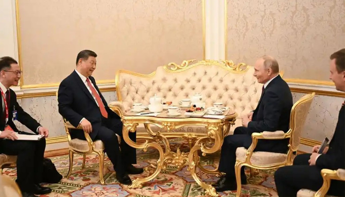 ما سکو : روسی صدر ولادیمیر پوٹن اور چینی صدر شی جن پھنگ کے درمیان کریملن میں صدارتی دفتر میں چائے کی میز پر ایک خصوصی نشست ہوئی ۔ جمعہ کے روز چینی میڈ یا کے مطا بق شی جن پھنگ نے نشاندہی کی کہ دنیا انتشار اور تبدیلی کے نئے دور میں داخل ہو چکی ہے۔ جب تک چین اور روس تزویراتی عزم کو برقرار رکھتے ہیں اور تزویراتی تعاون پر قائم رہتے ہیں، تو کوئی بھی طاقت دونوں ممالک کو اپنی متعلقہ ترقی اور احیاء سے نہیں روک سکتی، چینی اور روسی عوام کے درمیان دوستی آئندہ نسلوں کے لیے ایک راستہ ہے اور یہ کثیر القطبی دنیا اور اقتصادی عالمگیریت کی طرف رجحان ہے۔ صدر شی جن پھنگ نے کہا کہ وہ صدر پیوٹن کے ساتھ قریبی رابطہ قائم رکھنا، چین روس تعلقات کے لیے رہنمائی فراہم کرنا اور عالمی نظم و نسق کو فروغ دینے کے لیے مثبت کردار ادا کرنا چاہتے ہیں ۔ پیوٹن نے کہا کہ وہ صدر شی جن پھنگ کے ساتھ قریبی تزویراتی رابطے کو برقرار رکھنے، دوطرفہ تعلقات کے فروغ کیلئے تزویراتی رہنمائی فراہم کرنے، پیچیدہ بین الاقوامی حالات کے چیلنجوں کا مشترکہ طور پر جواب دینے، جامع تزویراتی تعاون کو گہرا کرنے، دونوں ممالک کے مشترکہ مفادات کے تحفظ اور انصاف، جمہوریت اور دنیا کی کثیر قطبی ترقی کو فروغ دینے کے لیے تیار ہیں۔ دونوں سربراہان مملکت نے یوکرائنی بحران جیسے مسائل پر تبادلہ خیال کیا۔ شی جن پھنگ نے کہا کہ یوکرائنی بحران کے حوالے سے چین مشترکہ، جامع، تعاون پر مبنی پائیدار عالمی سلامتی کے تصور کی وکالت کرتا ہے اور اس پر عمل پیرا ہے اور اس بات پر یقین رکھتا ہے کہ تمام ممالک کے جائز تحفظات کو سنجیدگی سے لیا جانا چاہیے اور بحران کی بنیادی وجوہات کو ختم کرنا چاہیے۔ چین امن کے لیے سازگار تمام کوششوں کا خیرمقدم کرتا ہے اور بات چیت کے ذریعے ایک منصفانہ، دیرپا اور پر امن معاہدے تک پہنچنے کا خواہاں ہے۔