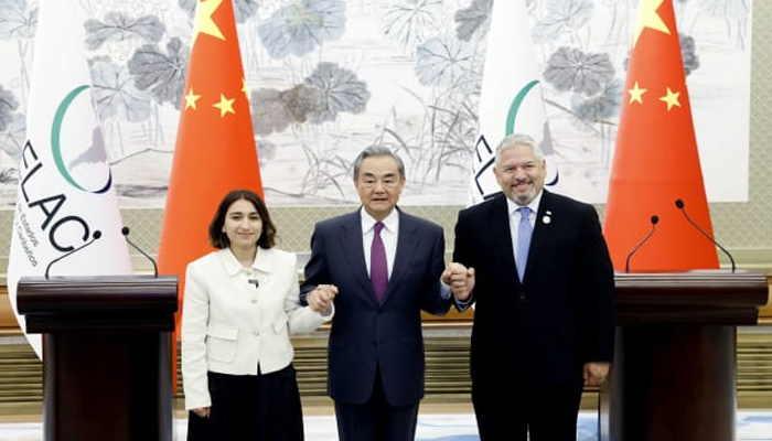 بیجنگ : چین کے وزیر خارجہ وانگ ای نے چائنا- سی ای ایل اے سی فورم کے چوتھے وزارتی اجلاس میں شرکت کرنے والے سی ای ایل اے سی کے شریک چیئرمین کولمبیا اور ہونڈوراس کے وزراء خارجہ کے ساتھ مشترکہ پریس کانفرنس کی اور سوالات کے جوابات دیئے۔ وانگ ای نے کہا کہ اجلاس میں بیجنگ اعلامیہ اور مشترکہ ایکشن پلان (2025-2027) جاری کیا گیا، فریقین نے تین سالہ تعاون کے 100 سے زائد منصوبوں پر اتفاق کیا۔ اس کے علاوہ، چین نے لاطینی امریکہ کی ترقی کو سپورٹ کرنے کے لیے 20 اقدامات کا اعلان بھی کیا۔ وانگ ای نے اجلاس میں حاصل ہونے والے اہم اتفاق رائے پر بھی روشنی ڈالی۔پہلا، چائنا- سی ای ایل اے سی فورم کا میکانزم روز بروز بہتر ہوتا جا رہا ہے۔اب تک چار وزراء اجلاس اور 31 شعبوں میں سو سے زائد ضمنی فورم کی کامیاب میزبانی کی گئی ہے جس سے چین-لاطینی امریکہ تعلقات کی ترقی کو مضبوطی سے فروغ دیا گیا ہے۔ دوسرا، چین اور لاطینی امریکہ مشترکہ تقدیر کے حامل ہیں ۔ چاہے بین الاقوامی صورتحال کتنی ہی تبدیل ہو جائے یا کسی بھی قسم کی بیرونی مداخلت کا سامنا ہو، فریقین ثابت قدمی سے ایک دوسرے کا ہاتھ تھامے رہیں گے اور ہر طرح کے حالات میں ایک دوسرے کے ساتھ کھڑے رہیں گے۔ تیسرا، چین-لاطینی امریکہ یکجہتی وقت کے تقاضوں کے عین مطابق ہے۔ چین اور لاطینی امریکہ گلوبل ساؤتھ کے اہم اراکین ہیں اور دنیا کو کثیر قطبی بنانے اور بین الاقوامی تعلقات کو جمہوری بنانے کی اہم قوتیں ہیں۔ انھیں یکجہتی اور تعاون کو مضبوط بنا کر تبدیلیوں اور افراتفری کا مقابلہ کرنا چاہیے اور دنیا میں امن اور ترقی کے لیے مثبت توانائی فراہم کرنی چاہیے۔ چوتھا، چین اور لاطینی امریکہ کے درمیان تعاون کے وسیع امکانات موجود ہیں۔ چین اور لاطینی امریکہ مل کر 2 ارب آبادی پر مشتمل ایک سپر مارکیٹ تشکیل دے سکتے ہیں، جو نہ صرف اپنی اپنی ترقی کے لیے نئے انجن کا کام کرے گی بلکہ عالمی خوشحالی کے لیے نئے مواقع بھی پیدا کرے گی۔