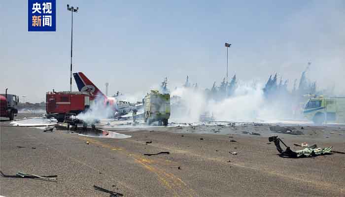 چائنا میڈیا گروپ کے رپورٹر نے بتایا کہ یمن کے دارالحکومت صنعاء کےبین الاقوامی ہوائی اڈے کی طرف سے دو دھماکوں کی آوازیں سنائی دیں۔ اس کے بعد، یمن کے حوثی مسلح گروہ کے اعلیٰ عہدیدار نے سی ایم جی رپورٹر کو تصدیق کی کہ اسرائیل نے اسی دن صبح صنعاء بین الاقوامی ہوائی اڈے پر حملہ کیا، جس میں یمن کا ایک مسافر طیارہ تباہ ہوگیا۔ یہ واحد مسافر طیارہ تھا جو حوثی مسلح گروہ کے کنٹرول میں چل رہا تھا۔