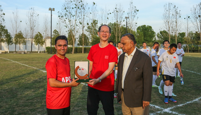 اسلام آباد:چائنا میڈیا گروپ کے شعبہ اردو، پاکستان میں چینی سفارت خانے اور آل پاکستان چائنا فرینڈ شپ ایسوسی ایشن نے حالیہ دنوں مشترکہ طور پر ایک شاندار چین پاکستان فٹ بال دوستانہ میچ کا انعقاد کیا تاکہ کھیلوں کے تبادلے کے ذریعے دونوں ممالک کے درمیان افرادی و ثقافتی تعاون کو فروغ دیا جا سکے اور چین پاکستان تعلقات کی مضبوطی کو اجاگر کیا جا سکے۔