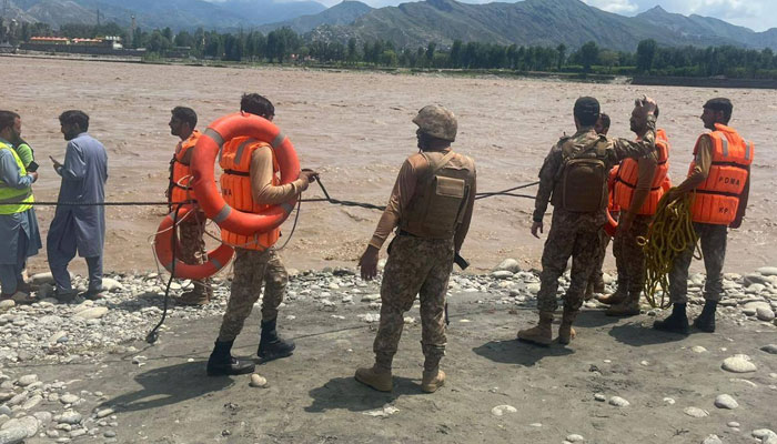دریں اثنا، پاک فوج سوات میں سیلابی صورتحال سے نمٹنے کے لئے پہنچ گئی، پاک فوج کے ضروری ساز و سامان سے لیس دستے ریسکیو اور ریلیف مشن میں حصہ لے رہے ہیں، اب تک 3لوگوں کو زندہ بچایا جا چکا ہے۔