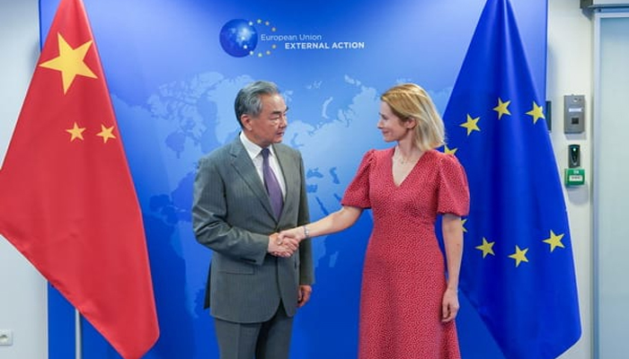 برسلز : چین کے وزیر خارجہ وانگ ای نے یورپی یونین کے خارجہ امور اور سلامتی پالیسی کی اعلی نمائندے کاجا کالاس کے ساتھ چین اور یورپی یونین کے درمیان اعلیٰ سطحی اسٹریٹجک ڈائیلاگ کے 13 ویں دور کا انعقاد کیا۔جمعرات کے روز چینی میڈ یا کے مطا بق وانگ ای نے کہا کہ چین اور یورپی یونین حریف کے بجائے شراکت دار ہیں اور فریقین کو اس فریم ورک کے اندر مواصلات کے ذریعے اپنے اختلافات کو مناسب طریقے سے حل کرنا چاہئے. بین الاقوامی صورتحال میں غیر یقینی صورتحال اور بڑھتے ہوئے عدم استحکام کے پیش نظر چین اور یورپی یونین تبادلوں کو مضبوط بنانا چاہیے، افہام و تفہیم کو گہرا کرنا چاہیے، باہمی اعتماد میں اضافہ کرنا چاہیے، تعاون کو آگے بڑھانا چاہیے اور مشترکہ طور پر جنگ کے بعد کے بین الاقوامی نظام کی حفاظت کرنی چاہیے اور دنیا کے لئے قیمتی استحکام فراہم کرنا چاہیے۔وانگ ای نے کہا کہ یورپ کو مختلف چیلنجز کا سامنا ہے لیکن یہ ماضی، حال اور مستقبل میں چین کی طرف سے نہیں ہیں۔ امید ہے کہ یورپی یونین واقعی چین کے بارے میں ایک معروضی اور منطقی تفہیم قائم کرے گی اور زیادہ فعال اور عملی چین کی پالیسی پر عمل کرے گی۔وانگ ای نے اس بات پر زور دیا کہ چین اور یورپی یونین کو باہمی احترام اور ایک دوسرے کی مرکزی دلچسپی پر غور کرنے کو ترجیج دینا ہے۔ انہوں نے امید ظاہر کی کہ یورپی یونین ٹھوس انداز میں ایک چین کے اصول پر عمل کرے گا۔کاجا کا لاس نے کہا کہ یورپی یونین ایک چین کے اصول پر قائم رہتا ہے اور چین کے ساتھ مل کر چین- یورپی یونین کی سربراہی ملاقات کی تیاری کے لیےتیار ہے تاکہ مزید تعمیراتی یورپ چین تعلقات کو فروغ دیا جائے اور مزید متوازن اور منصفانہ معاشی و تجارتی تعاون بڑھایا جائے۔فریقین نے یوکرین کے بحران ، اسرائیل اور فلسطین کے درمیان تصادم اور ایران کے جوہری مسئلے سمیت دیگر معاملات پر بھی تبادلہ خیال کیا۔