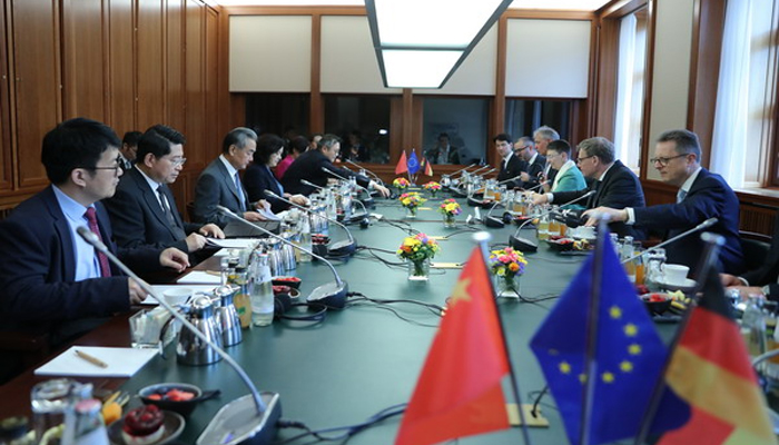 برلن: چین کے وزیرخارجہ وانگ ای نے برلن میں جرمنی کے وزیرخارجہ جوہان واڈے فل کے ساتھ چین اور جرمنی کے درمیان سفارتکاری و سلامتی سے متعلق اسٹریٹجک ڈائیلاگ کے آٹھویں دور کا انعقاد ہوا ۔جمعہ کے روز چینی میڈیا کے مطابق وانگ ای نے کہا کہ کچھ عرصے پہلے چین کے صدر مملکت شی جن پھنگ اور جرمن چانسلر فریڈرک مرس نے ٹیلی فون پر بات چیت کرتے ہوئے اگلے مرحلے میں چین جرمنی تعلقات کی ترقی پر روشنی ڈالی ہے۔چین جرمنی تعلقات آگے بڑھنے کے اہم تجربات میں باہمی اعتماد ، اختلافات کا احترام کرتے ہوئے ہم آہنگی کے حصول اور مشترکہ کامیابیاں شامل ہیں۔چین جرمنی کے ساتھ اپنے تعلقات کو چین کی سفارت کاری میں اہم جگہ پر رکھتا ہے، چین کے ساتھ تعلقات کو فروغ دینے میں نئی جرمن حکومت کے مثبت اور منطقی رویے کو سراہتا ہے اور امید کرتا ہے کہ جرمنی مکمل وحدت کے لیے چین کی کوششوں کی حمایت کرے گا، جس طرح چین نے ماضی میں جرمنی کے دوبارہ اتحاد کی غیر مشروط حمایت کی تھی اسی طرح ایک چین کے اصول پر پاسداری کرے گا۔ یورپی یونین کے مرکزی بڑے ملک کی حیثیت سے جرمنی نے چین یورپ تعلقات کو فروغ دینے کے لیے مثبت خدمات سرانجام دی۔امید ہے کہ جرمنی چین یورپ تعلقات کی ترقی کے لیے تعمیری کردار ادا کرتا رہےگا۔ جرمنی کے وزیرخارجہ جوہان واڈے فل نے کہا کہ جرمنی چین کا قابل اعتماد شراکت دار ببنے کے لیے تیار ہے۔ دونوں ممالک کے شراکت داری کے تعلقات بہتر بنیاد پر قائم رہتے ہیں۔جرمن حکومت ایک چین کے اصول پرمضبوطی سے کاربند ہے۔فریقین نے یوکرین کے بحران ، ایران کے جوہری مسئلے ، مشرق وسطیٰ کی صورتحال اور کثیر الجہتی اسٹریٹجک تعاون پرتبادلہ خیال کیا اور قریبی صلاح و مشورہ برقرار رکھتے ہوئے فائر بندی اور تنازعات کے پرامن حل کے لیے کوشش کرنے پر اتفاق کیا۔