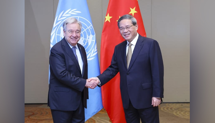 ریو ڈی جنیرو: چینی وزیر اعظم لی چھیانگ نے اقوام متحدہ کے سیکرٹری جنرل انتونیو گوتریس سے ملاقات کی۔بدھ کے روز لی چھیانگ نے کہا کہ 80 سال قبل اپنے قیام کے بعد سے اقوام متحدہ نے عالمی امن و امان کو برقرار رکھنے اور مشترکہ ترقی کو فروغ دینے میں اہم کردار ادا کیا ہے۔ بین الاقوامی صورتحال جتنی پیچیدہ ہو گی، اقوام متحدہ کے وقار کو برقرار رکھنا اتنا ہی اہم ہے۔ چین عالمی حکمرانی میں اقوام متحدہ کے مرکزی کردار کو مضبوطی سے برقرار رکھتا ہے اور حقیقی کثیر الجہتی کو فروغ دینے اور اقوام متحدہ کے مقاصد کو بہتر طریقے سے آگے بڑھانے کے لئے تیار ہے۔ ایک ذمہ دار بڑے ترقی پذیر ملک کی حیثیت سے چین دوسرے ممالک کے ساتھ کھلے پن کو وسعت دے گا ، مواقع کا اشتراک جاری رکھے گا اور مشترکہ ترقی کے حصول کے لئے کوشش کرے گا۔ انتونیو گوتریس نے کہا کہ صدر شی جن پھنگ کی جانب سے تجویز کردہ تین گلوبل انیشی ایٹوز اقوام متحدہ کے اہداف سے انتہائی مطابقت رکھتے ہیں اور چین نے ہاٹ اسپاٹ ایشوز کے سیاسی تصفیے کو فروغ دینے، بین الاقوامی اقتصادی اور مالیاتی نظام میں اصلاحات اور ترقی پذیر ممالک کے مفادات کے تحفظ میں اہم کردار ادا کیا ہے۔ اقوام متحدہ چین کے ساتھ تعاون کو مضبوط بنانے، کثیر الجہتی کی حمایت، یکطرفہ پسندی کی مخالفت اور ماحولیاتی تبدیلی جیسے عالمی چیلنجوں سے مشترکہ طور پر نمٹنے کا خواہاں ہے۔اسی دن لی چھیانگ نے ریو ڈی جنیرو میں برازیل میں چینی مالی اعانت سے چلنے والے کاروباری اداروں کے ایک سمپوزیم میں بھی شرکت کی۔