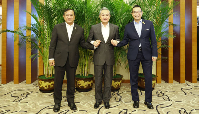 بیجنگ:سی پی سی سینٹرل کمیٹی کے پولیٹیکل بیورو کے رکن اور چینی وزیر خارجہ وانگ ای نے کمبوڈیا کے نائب وزیر اعظم و وزیر خارجہ براسوکن اور تھائی وزیر خارجہ مالی کو صوبہ یون نان کے شہر آن نینگ میں چائے کے استقبالیہ میں مدعو کیا ، اور خوشگوار ماحول میں کمبوڈیا ۔تھائی لینڈ سرحدی تنازع پر دوستانہ اور کھلا تبادلہ خیال کیا۔