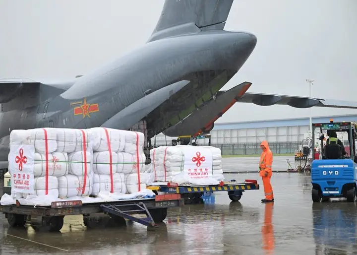 چینی فضائیہ کے مطابق 2 وائی-20 ٹرانسپورٹ طیاروں نے یہ سامان، جس میں خیمے اور کمبل شامل ہیں، پاکستان کے دارالحکومت اسلام آباد پہنچایا۔