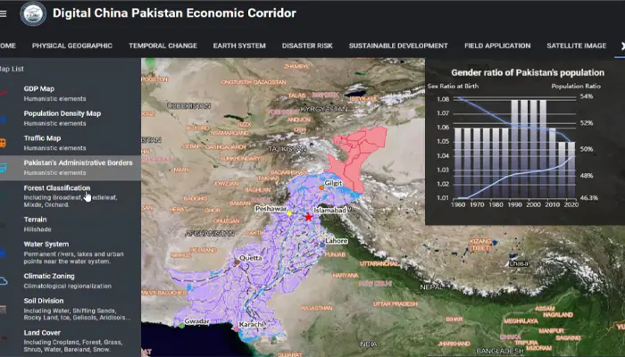 ڈیجیٹل سی پیک انٹیگریٹڈ ڈیٹا پلیٹ فارم سی پیک کے ڈیجیٹل جغرافیائی منظر نامے کو پیش کرنے کے لیے ڈیجیٹل نقشوں کا استعمال کرتا ہے، جو کہ اسپیٹیو ٹمپورل ڈیٹا کی بنیاد پر خطے میں کی جانے والی مختلف تحقیقی سرگرمیوں کے لیے جامع مدد فراہم کرتا ہے۔ یہ ڈیٹا وسائل سی پیک خطے میں پائیدار ترقی میں معاونت کریں گے اور پاکستان میں آفات سے بچاؤ اور تخفیف کی صلاحیتوں کو بڑھانے میں مدد کریں گے۔