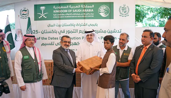 سعودی عرب کی جانب سے کنگ سلمان ہیومینیٹیرین ایڈ اینڈ ریلیف سینٹر کے زیر اہتمام اور پاکستان بیت المال کے تعاون سے پاکستان میں کھجوروں کی تقسیم