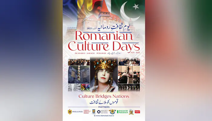 اسلام آباد: یکم نومبر 2025رومانیہ کے سفارتخانے کی جانب سے پاکستان میں پہلی مرتبہ ’’رومینین کلچر ڈیز‘‘ کا افتتاح کر دیا گیا۔ ’’کلچر بریجز نیشنز‘‘ کے عنوان سے منعقد ہونے والی یہ ثقافتی سرگرمیاں پورے نومبر کے دوران اسلام آباد، کراچی اور پشاور میں جاری رہیں گی، جن کا مقصد دونوں ممالک کے درمیان ثقافتی تعلقات کو فروغ دینا اور عوامی رابطوں کو مضبوط بنانا ہے۔