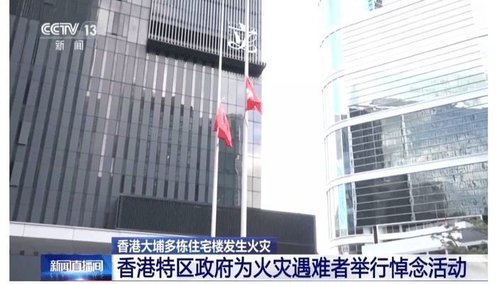 ہفتہ کے روز ہانگ کانگ خصوصی انتظامی علاقے کی حکومت کے ہیڈکوارٹر میں ایک تقریب میں پرچم سرنگوں کیا گیا۔اس کے ساتھ ، ہانگ کانگ خصوصی انتظامی علاقے میں مرکزی حکومت کے رابطہ دفتر نے بھی ایک تعزیتی تقریب میں اپنا پرچم سرنگوں کیا۔ 29 نومبر سے 1 دسمبر تک، ہانگ کانگ کی تمام سرکاری عمارتوں پر پرچم سرنگوں رہیں گے۔ہانگ کانگ کے تائی پو ڈسٹرکٹ کے ہونگ فو کورٹ میں پانچویں درجے کی آگ بھڑک اٹھی ، اور اس وقت تک 128 افراد کے ہلاک ہونے کی اطلاع موصول ہوئی ہے۔