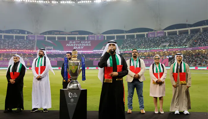 دبئی، دبئی انٹرنیشنل اسٹیڈیم میں ڈی پی ورلڈ آئی ایل ٹی 20 سیزن 4 کی شاندار افتتاحی تقریب منعقد ہوئی، جو 54ویں یو اے ای نیشنل ڈے کے جشن کے ساتھ منسلک تھی۔