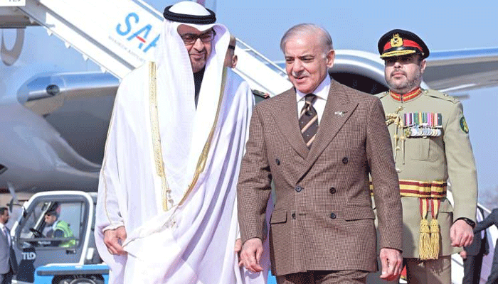 یو اے ای صدر کے ساتھ ان کا اعلیٰ سطح کا وفد بھی پہنچا ہے، پاکستان اور یو اے ای کے درمیان اہم معاشی تجارتی معاہدوں کی منظوری دی جائے گی۔