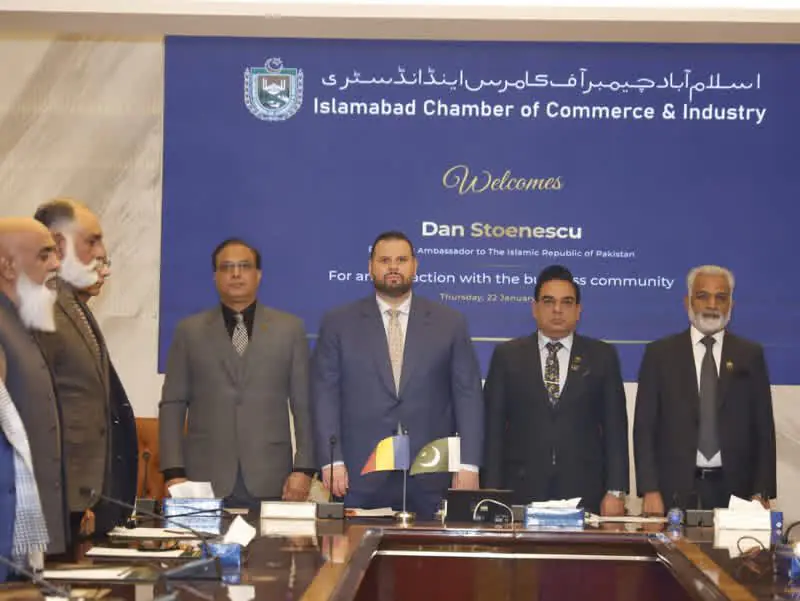 رومانیہ کے سفیر ڈان اسٹوئنزکو نے اسلام آباد چیمبر آف کامرس اینڈ انڈسٹری میں بزنس کمیونٹی کے ساتھ ملاقات کی، جس میں اقتصادی تعاون پر تبادلہ خیال کیا گیا۔