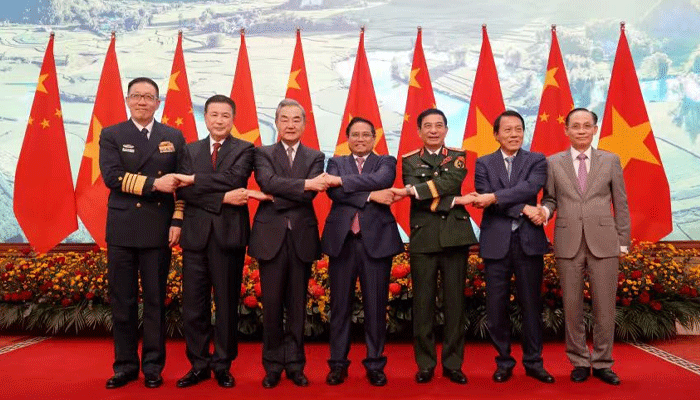ہنوئی : ویتنام کے وزیر اعظم فام من چن نے ہنوئی میں چین-ویت نام کے خارجہ، دفاع اور پبلک سیکیورٹی کے ‘3+ 3’ اسٹریٹجک ڈائیلاگ میکانزم کی پہلی وزارتی سطح کی میٹنگ میں شرکت کے لئے آئے چینی وزیر خارجہ وانگ ای، وزیر پبلک سیکیورٹی وانگ شیاؤہونگ، اور وزیر دفاع دونگ جون سے ملاقات کی۔منگل کے روزفام من چن نے کہا کہ چین کے ساتھ تعلقات کو مستحکم کرنا اور فروغ دینا ویتنام کی پارٹی اور حکومت کی اول ترجیح اور اسٹریٹجک انتخاب ہے۔ ویتنام ایک چین کی پالیسی پر مضبوطی سے عمل پیرا ہے، صدر شی جن پھنگ کے تجویز کردہ گلوبل اینشی ایٹوز کی حمایت کرتا ہے، اور چین کے ساتھ مل کر دونوں پارٹیوں کے اعلیٰ رہنماؤں کے اہم اتفاق رائے کو نافذ کرنے، اعلیٰ سطحی ملاقاتوں کی تیاری کرنے، عملی تعاون کو فروغ دینے، اختلافات کو مناسب طریقے سے حل کرنے، ویتنام-چین جامع اسٹریٹجک شراکت داری کو گہرا کرنے اور ایک اسٹریٹجک اہمیت والے ہم نصیب معاشرے کی تعمیر کے لیے تیار ہے۔وانگ ای نے کہا کہ اس سال ویتنام کی کمیونسٹ پارٹی کی 14 ویں کانگریس کے بعد، دونوں پارٹیوں کے اعلیٰ رہنماؤں کے درمیان بروقت رابطہ ہوا، اور چین-ویتنام ہم نصیب معاشرے کی تعمیر میں گہرے تعاون پر اہم اتفاق رائے حاصل کیا گیا۔ ‘3+ 3’ اسٹریٹجک ڈائیلاگ میکانزم کی پہلی وزارتی سطح کی میٹنگ کامیابی کے ساتھ منعقد ہوئی، جو دونوں پارٹیوں اور دونوں ممالک کے تعلقات کی اعلیٰ سطح اور اسٹریٹجک اہمیت کو ظاہر کرتی ہے۔ وانگ ای نے کہا کہ چین ،ویتنام کے ساتھ مل کر دونوں پارٹیوں اور ممالک کے اعلیٰ رہنماؤں کے اہم اتفاق رائے کو نافذ کرنے، اسٹریٹجک ہم آہنگی کو جامع طور پر گہرا کرنے، باہمی رابطے، تجارتی و سرمایہ کاری کے شعبوں میں تعاون کو مضبوط کرنے، مزید عوامی فلاح و بہبود کے منصوبوں پر عمل کرنے، اور دونوں ممالک کے عوام کی بھلائی کے لیے کام کرنے کا خواہاں ہے۔ وانگ شیاؤہونگ اور دونگ جون نے بالترتیب چین-ویتنام کے پبلک سیکیورٹی اور دفاعی شعبوں کے تعاون کی صورتحال سے آگاہ کیا۔