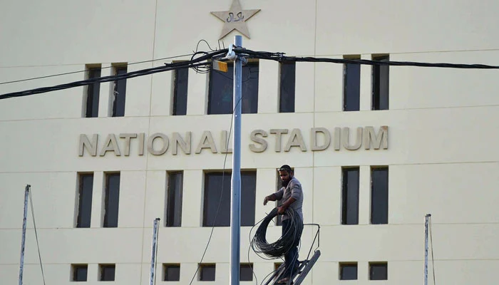 نیشنل اسٹیڈیم کے تمام انکلوژر کی چھتیں ہٹا دی گئیں، انکلوژر میں لگی رنگ برنگی کرسیوں سے اسٹیڈیم ایک نئے روپ میں نظر آرہا ہے۔