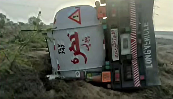 ڈرائیور کو نیند آ گئی، کراچی سے 40 ہزار لیٹر پیٹرول لے جانیوالا ٹینکر پیر محل کے قریب اُلٹ گیا