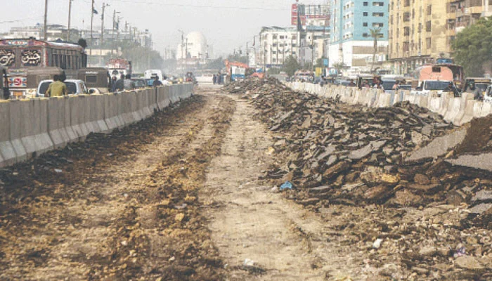 ٹریفک پولیس کے مطابق سڑک گرین لائن کے ترقیاتی کام کے باعث بند ہے، کوسٹ گارڈ سے آنے والا ٹریفک نمائش چوک کی طرف بھیجا جا رہا ہے۔