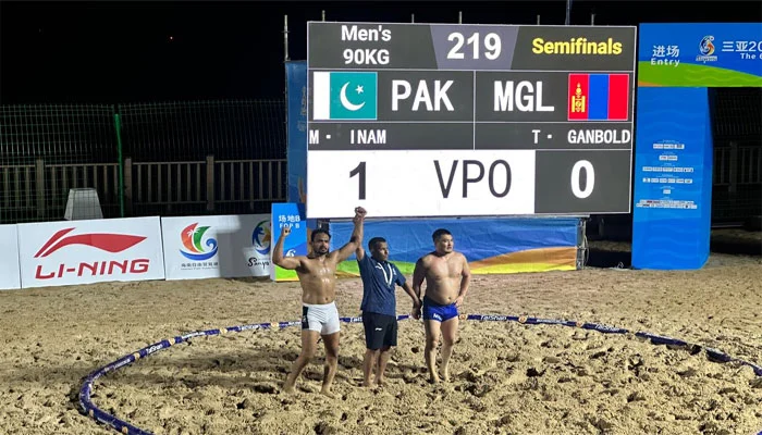 چین کے شہر ثانیہ میں جاری ایشین بیچ گیمز میں ریسلنگ کے مقابلوں میں پاکستان کے پہلوانوں کی کارکردگی شاندار رہی، دو میڈلز یقینی ہوگئے۔ انعام بٹ اور اسداللہ فائنل میں پہنچ گئے۔